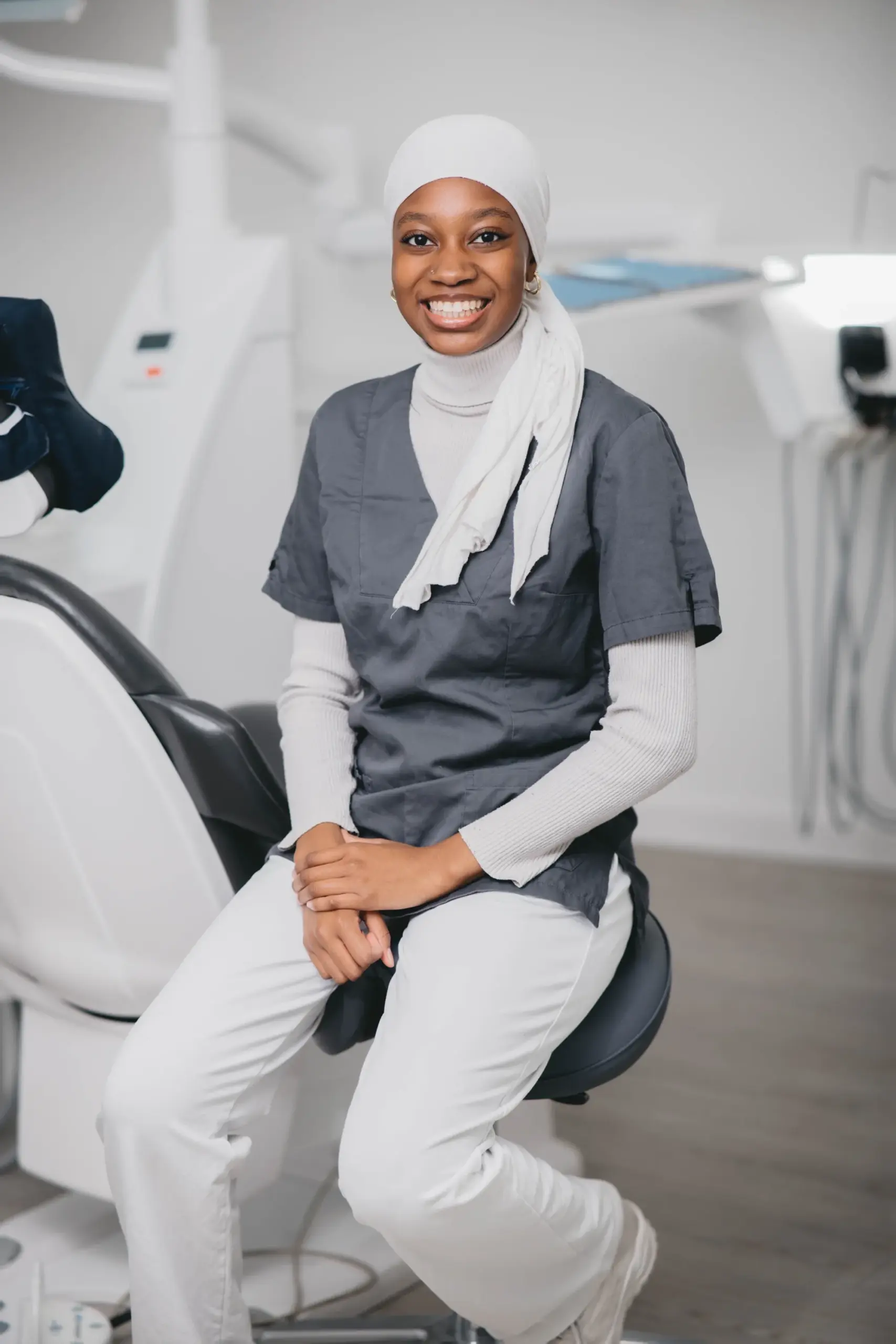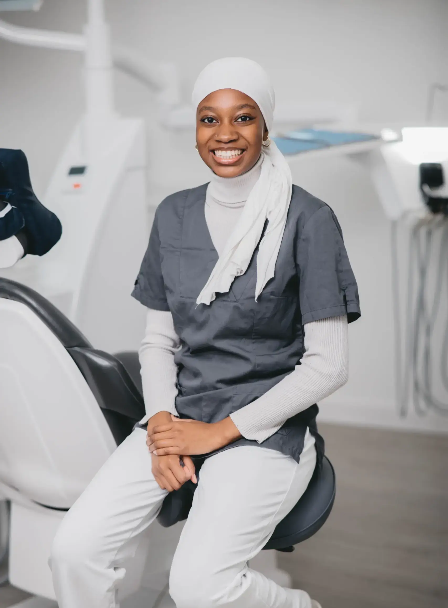 ich bin Hamdiath und schließe bald meine Ausbildung als ZFA ab. Ich bin dankbar Teil dieses Praxisteams zu sein, da wir uns gegenseitig unterstützen und offen kommunizieren. Mir macht es Freude, Patienten-/innen bei Zahnproblemen zu unterstützen und ihr Lächeln zu verbessern.